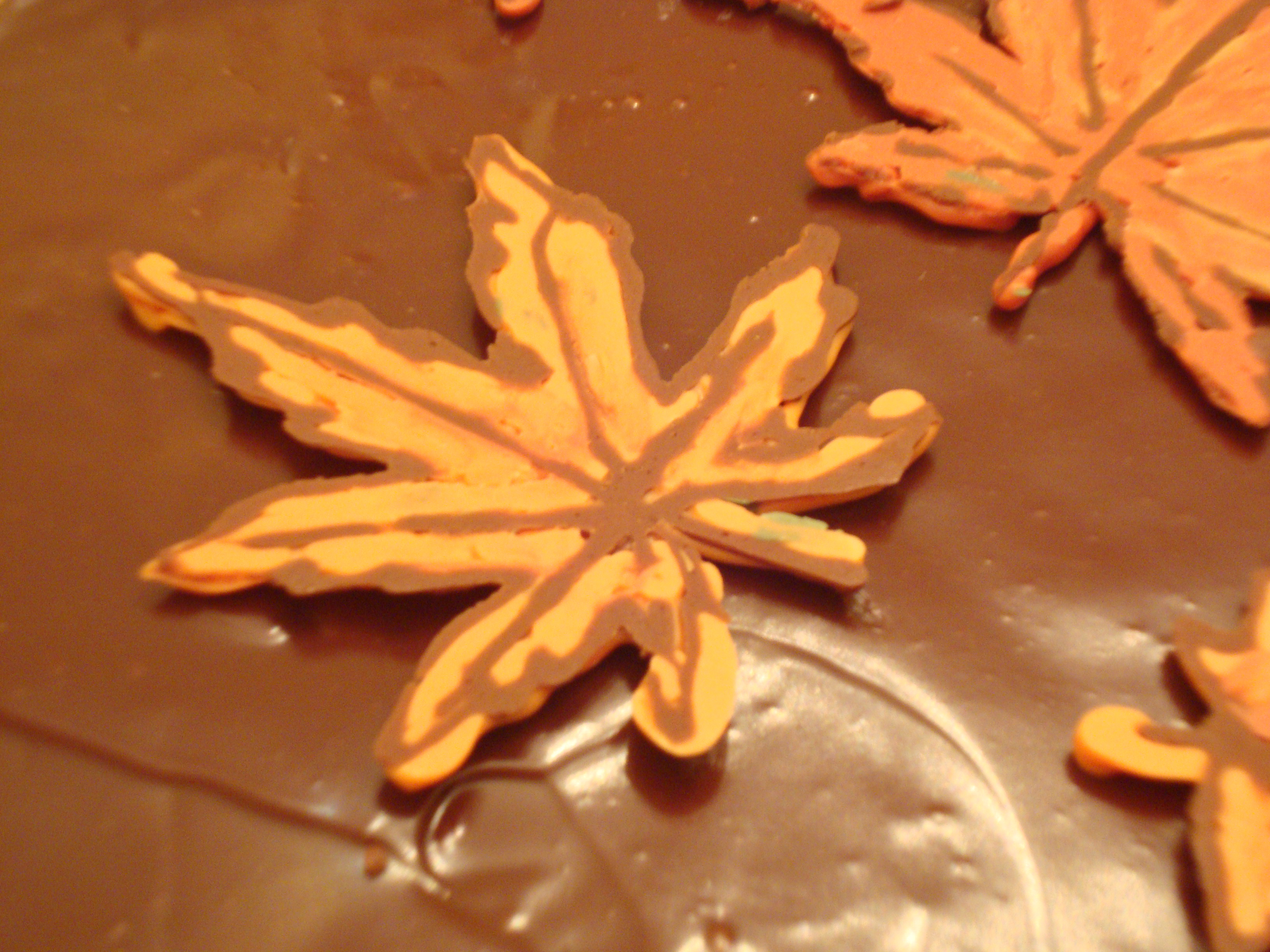 This was a cake that I wished I could have had another slice before it was all gone! This Boston Cream Pie was made for a dinner party celebrating birthdays and friendships. Inspired by the beautiful and colorful foliage, hand made chocolate fall leaves adorn the dark chocolate ganache covered cake.