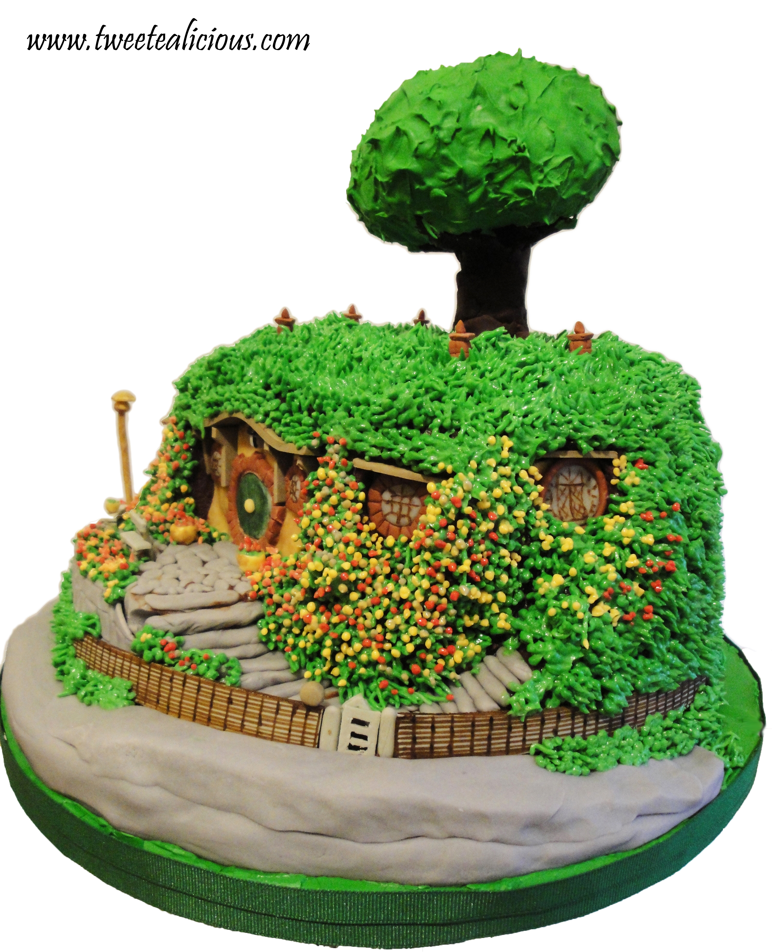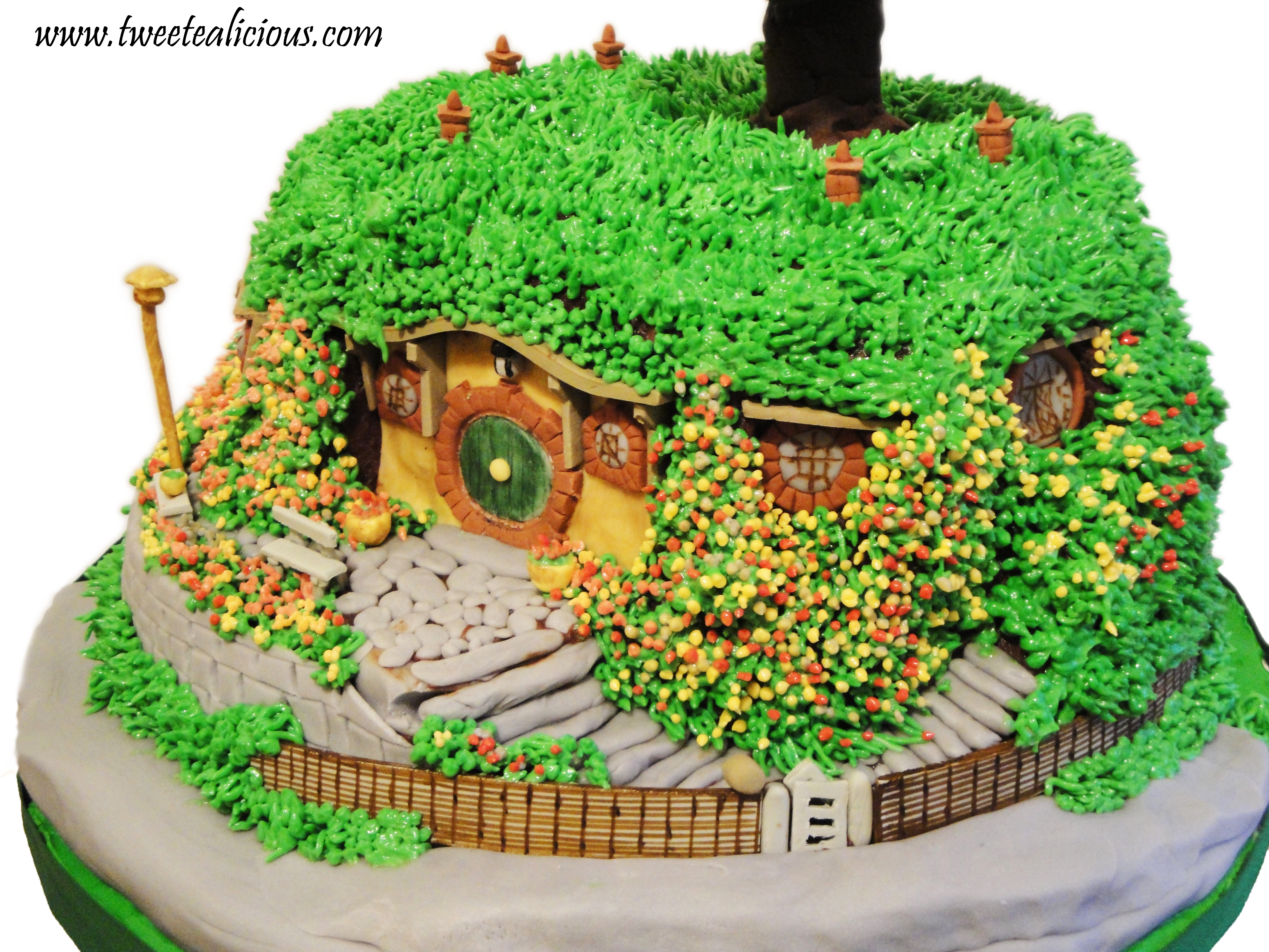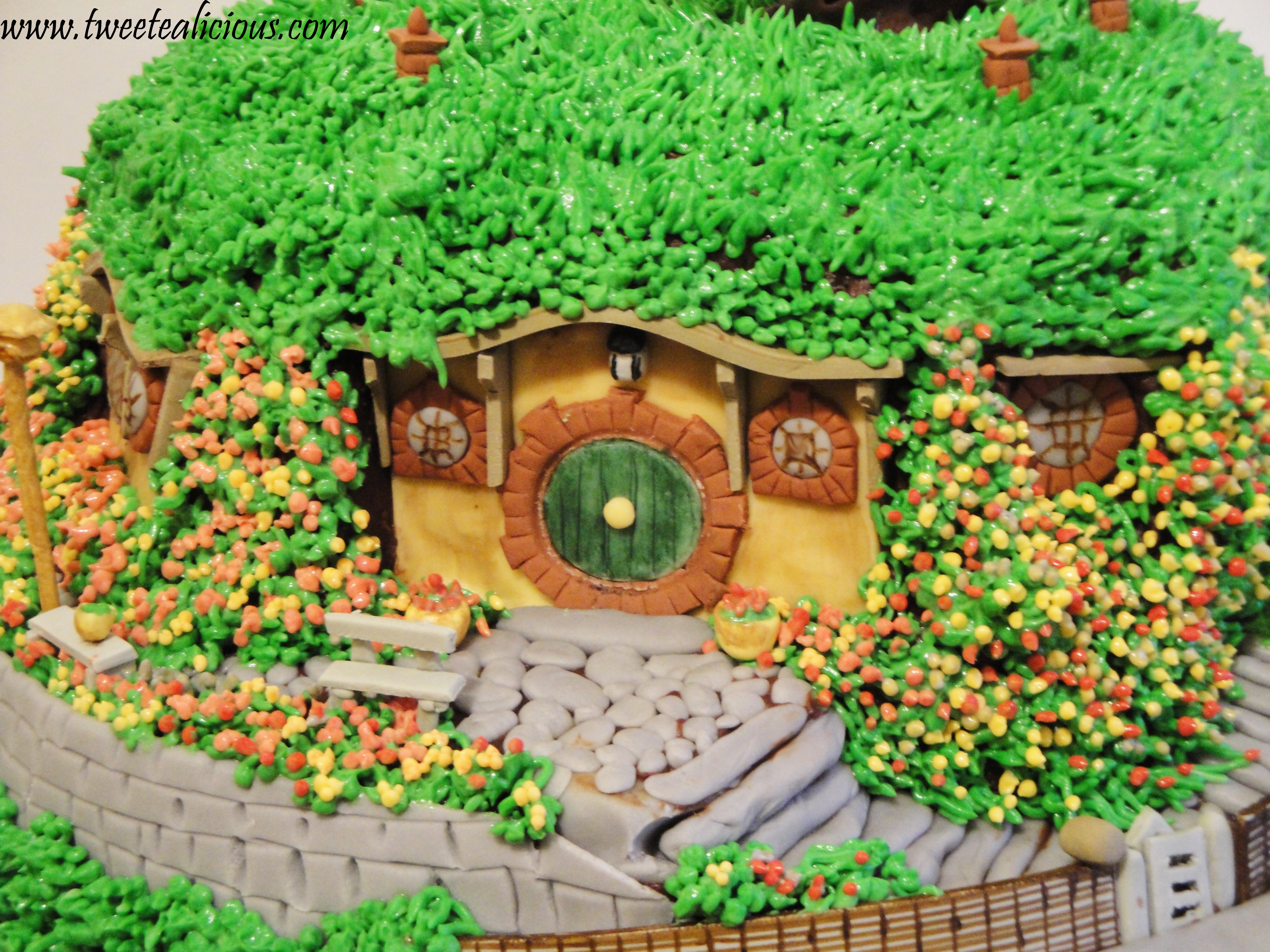 What a privilege it was to be able to make this cake for a great fan of J.R.R. Tolkien like myself! This was indeed a very happy cake to make. I felt the joy and the carefree spirit of the hobbits as I made each of the decorative components for this Bag End Cake. I felt like a hobbit, of whom Tolkien described as “an unobtrusive but very ancient people” who “love peace and quiet and good tilled earth: a well-ordered and well-farmed countryside was their favourite haunt.” I suppose, in this case, it would be a chocolate cake instead of earth and buttercream instead of grass!