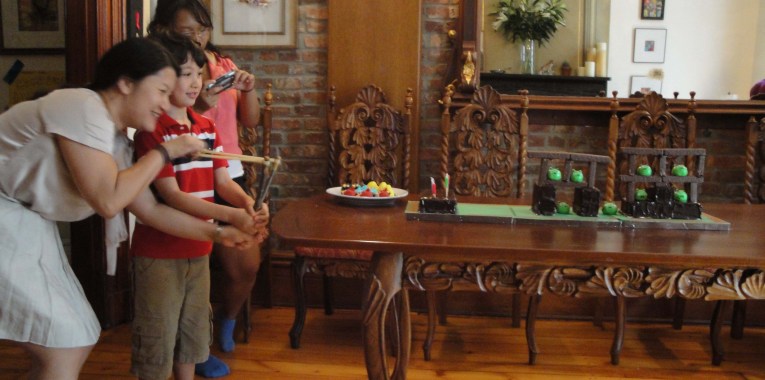 A wave of cheers went off around the room. The kids stuffed their faces with the birds, pigs and cake. Judging from the reactions of the kids, I think the cake turned out to be a great success. The smiles from the little faces were truly a Kodak moment which made the hard work worth all of the effort.