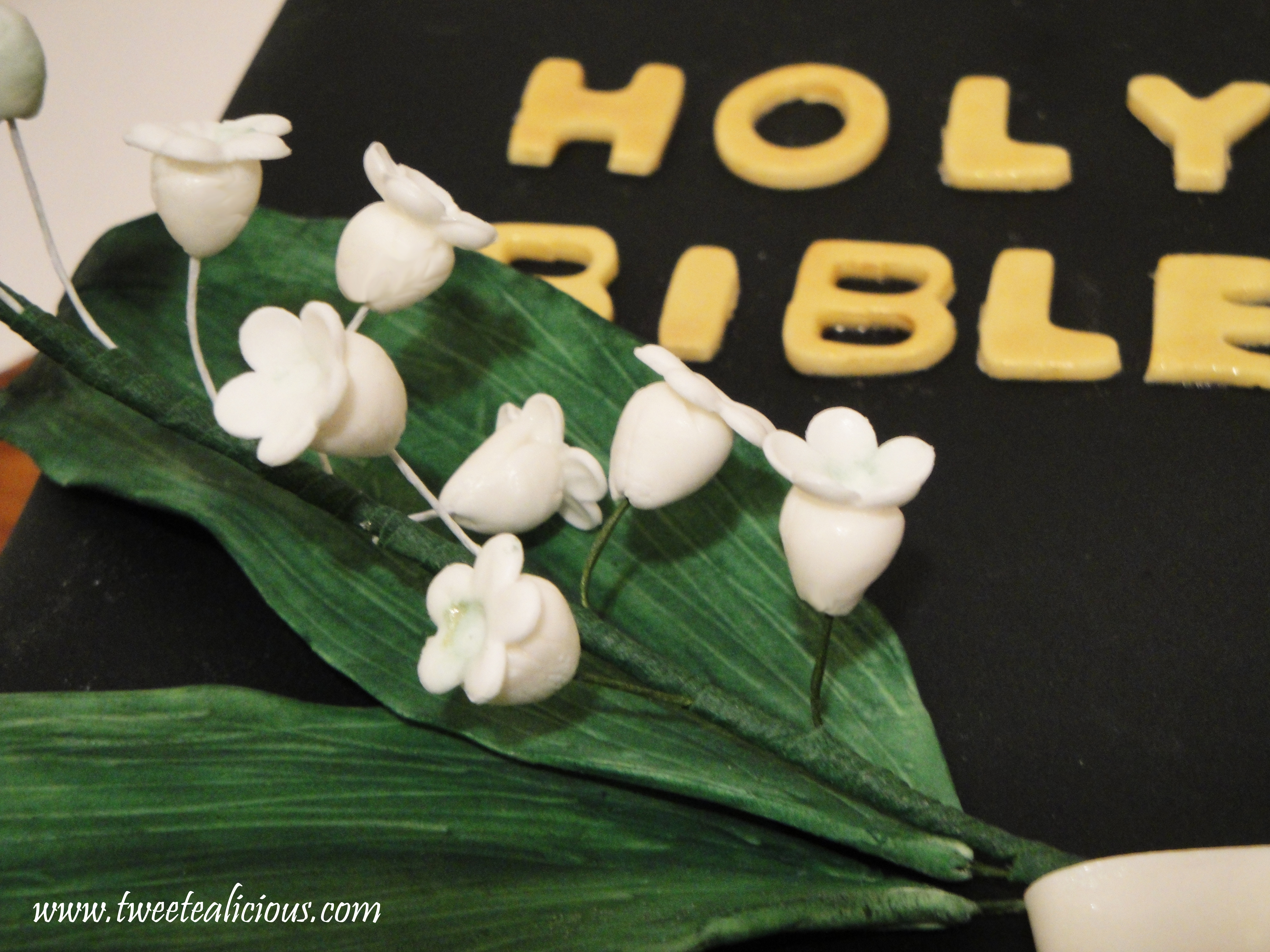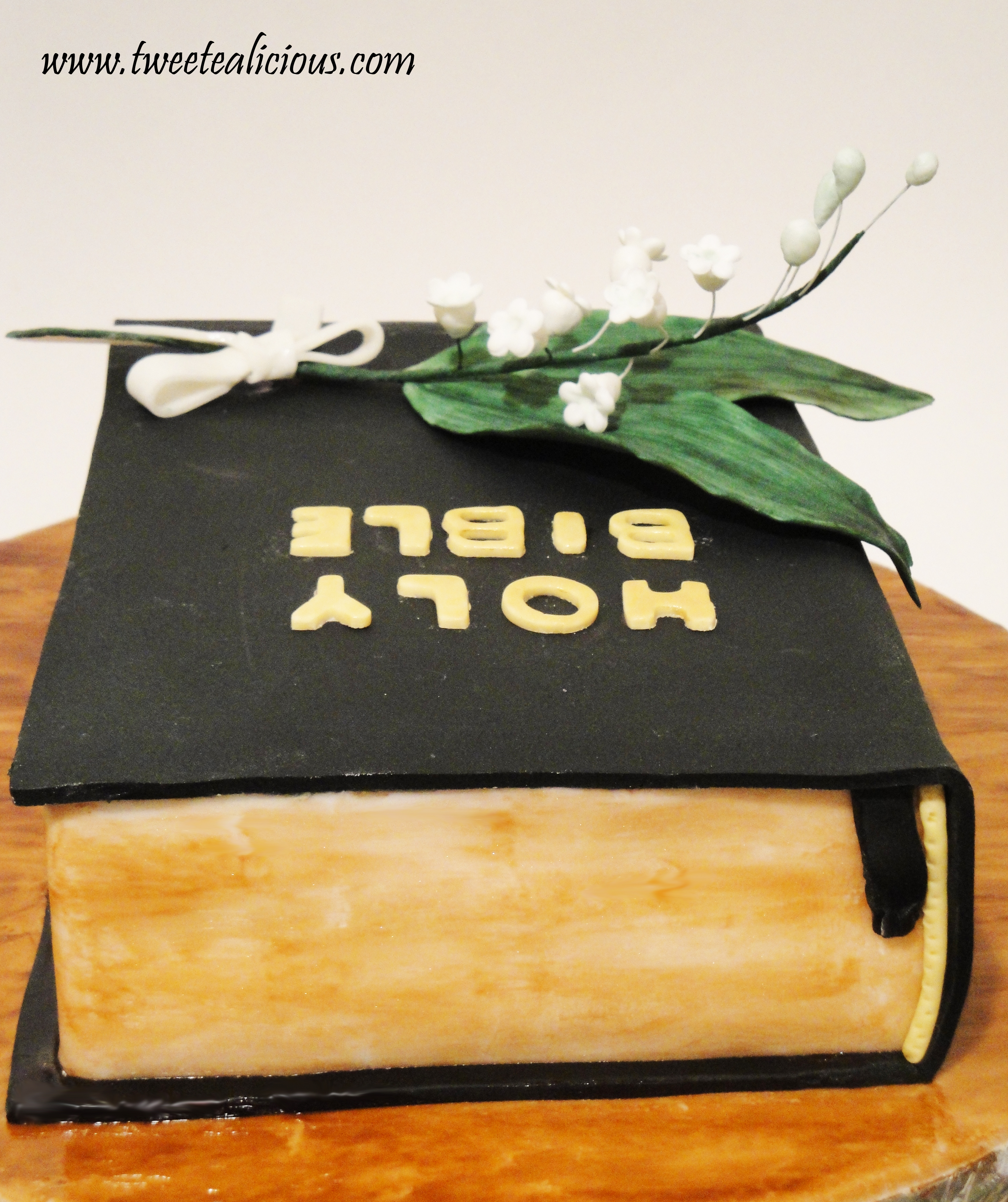 This cake was made for a friend who has been blessed by God to be an encouragement for many, especially during the past year. The Word of God has been her source of strength as of late, as she related to her friends. So her best friend suggested a Bible cake on a plate with utensils, to capture the importance of taking in the Word of God daily, similar to us needing our food daily.
