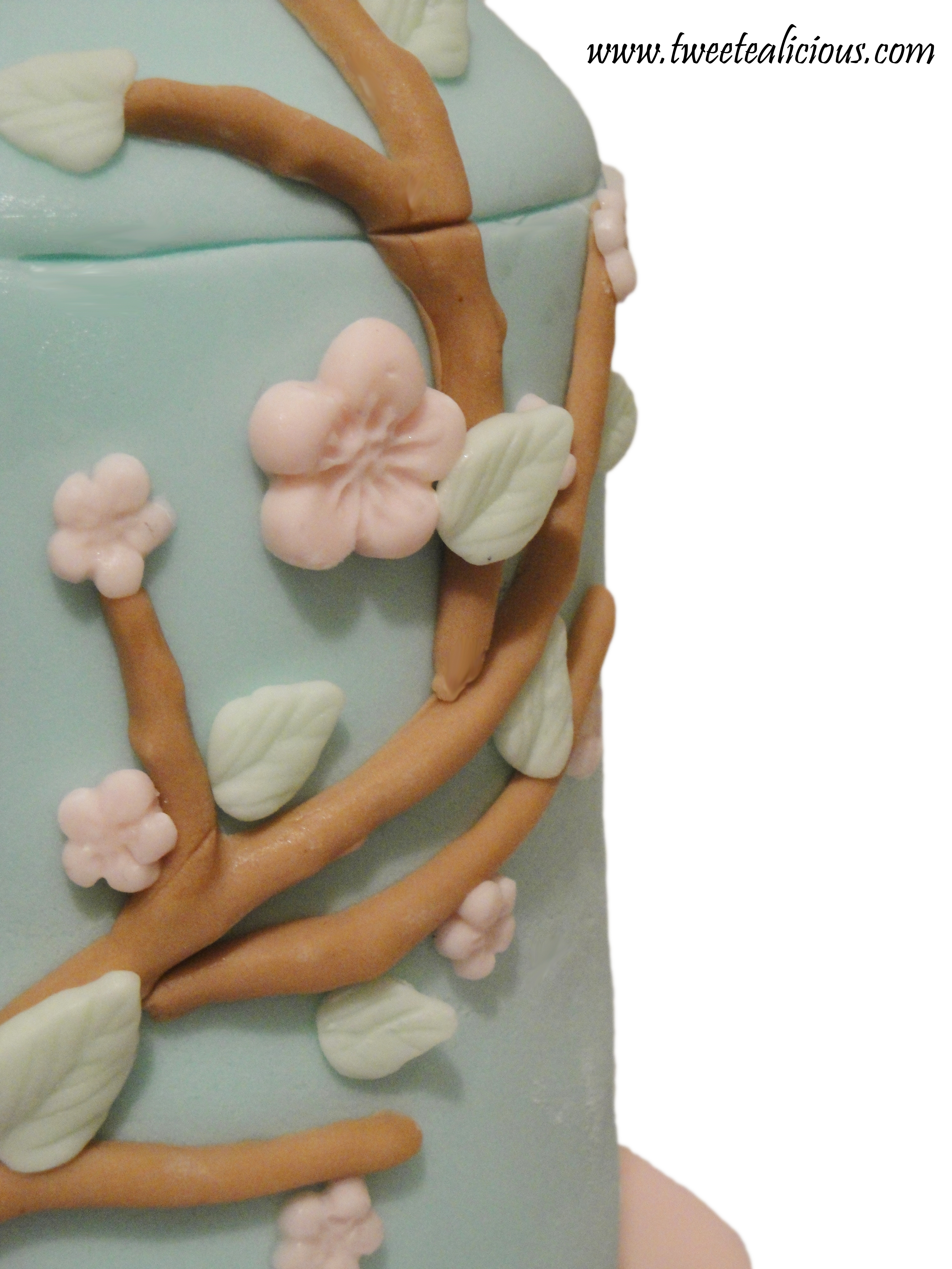 This teacup is not made in the shape of a typical teacup because it is for a Chinese lady who grew up with a famous river in her city named “Cherry Blossom River”. The river banks are full of cherry trees. As they bloom in the spring, the beauty is indescribable. This cake is made for her birthday to bring her a small bit of home.