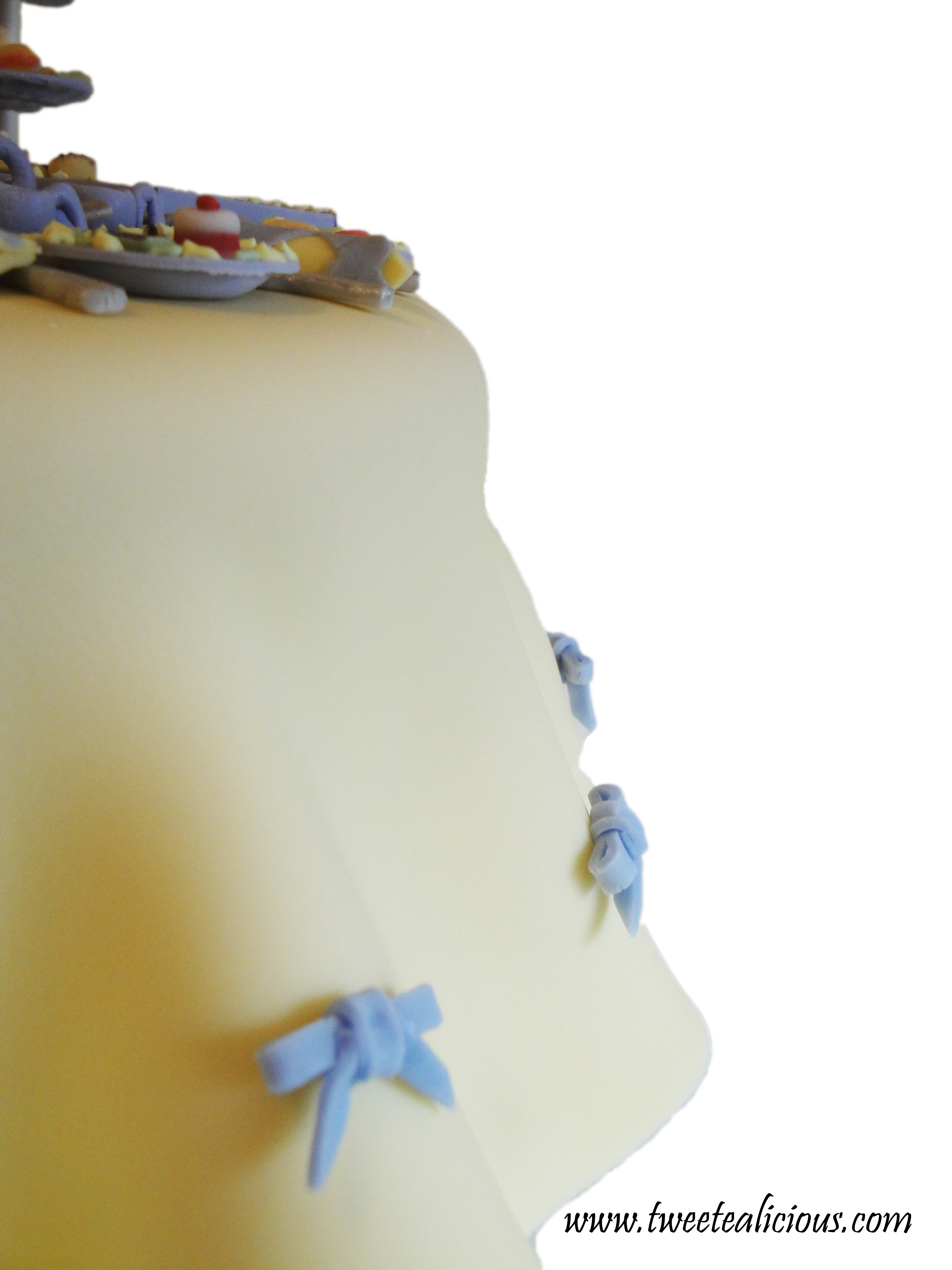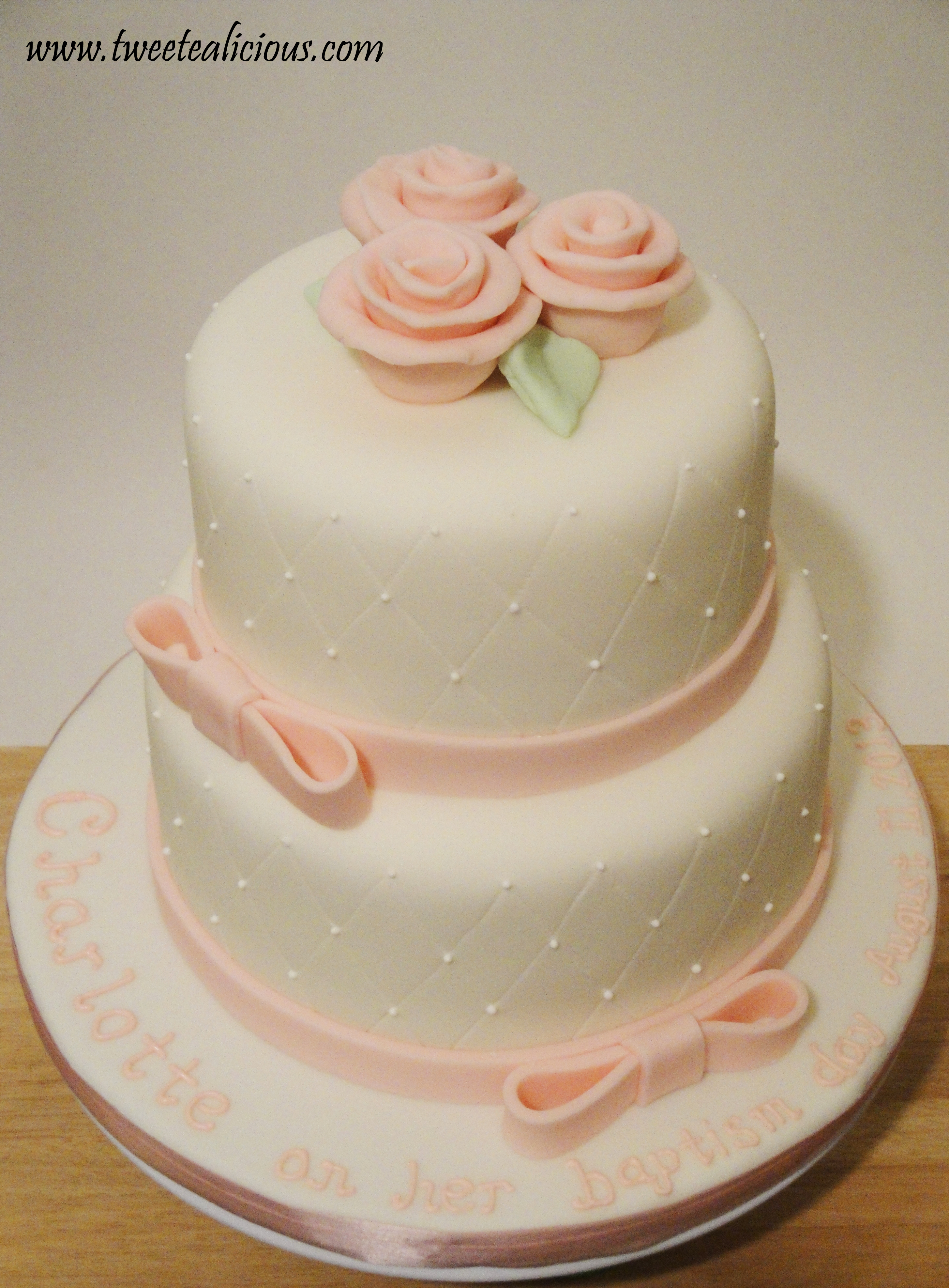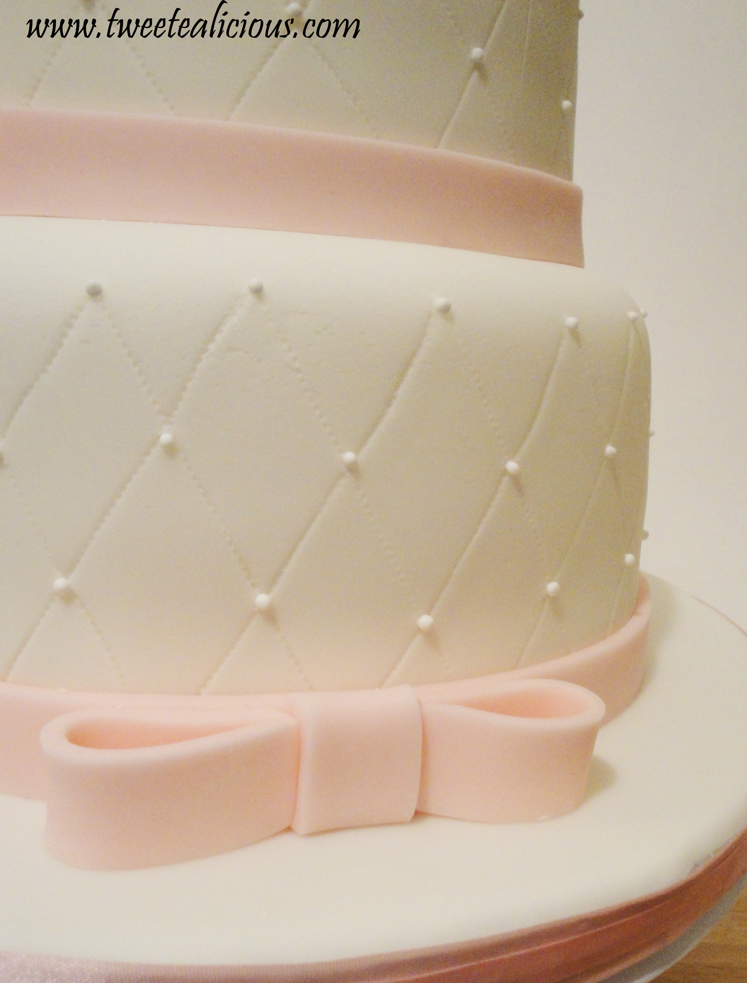 Little Charlotte’s mom wanted to celebrate Charlotte’s baptism with a quilted cake. Initially I was finding it difficult to come up with a unique design. Then a picture of Charlotte with a cute headband was what inspired me finally. I hope her mom does not mind me cropping the photo to show the headband here.