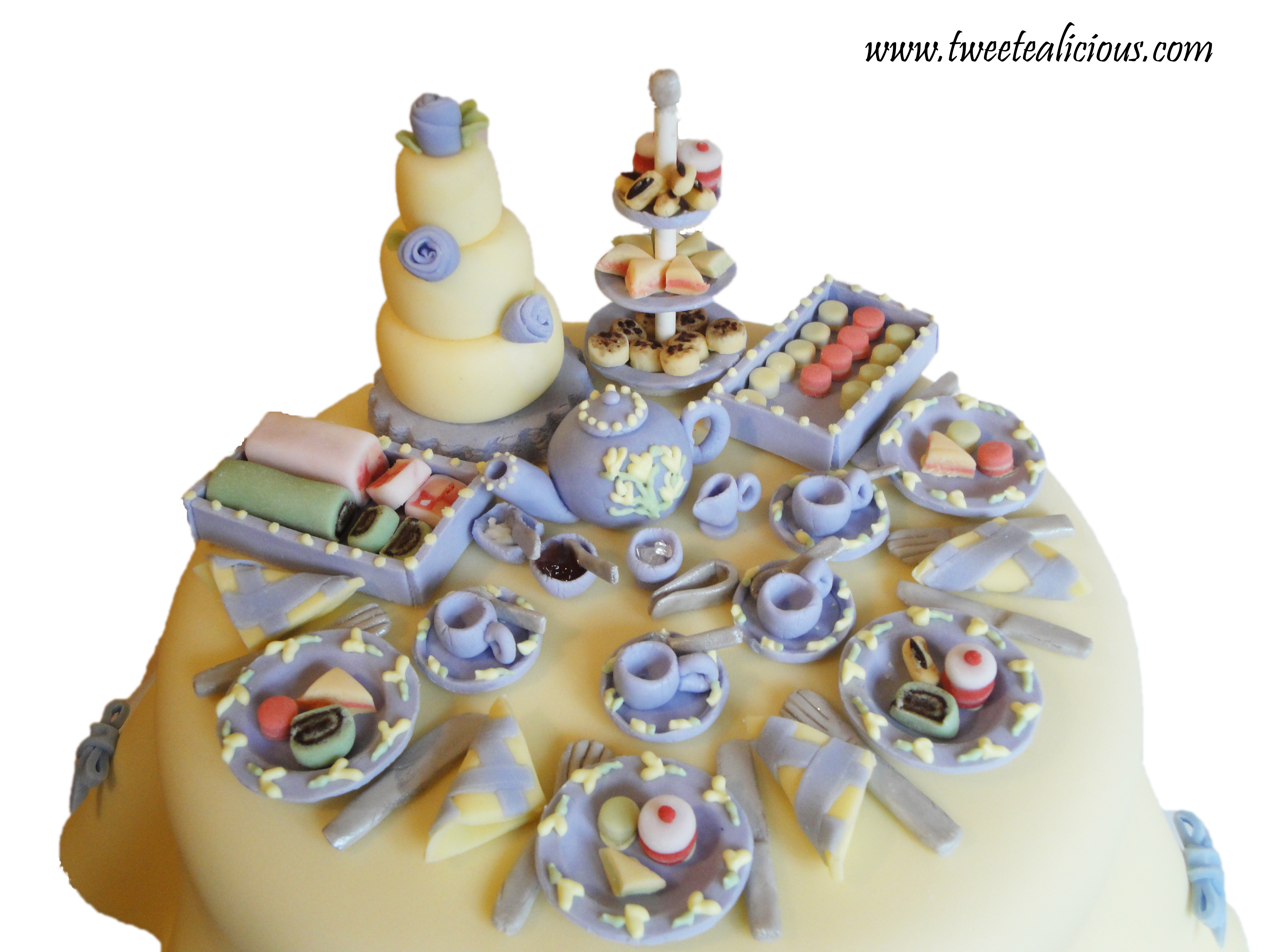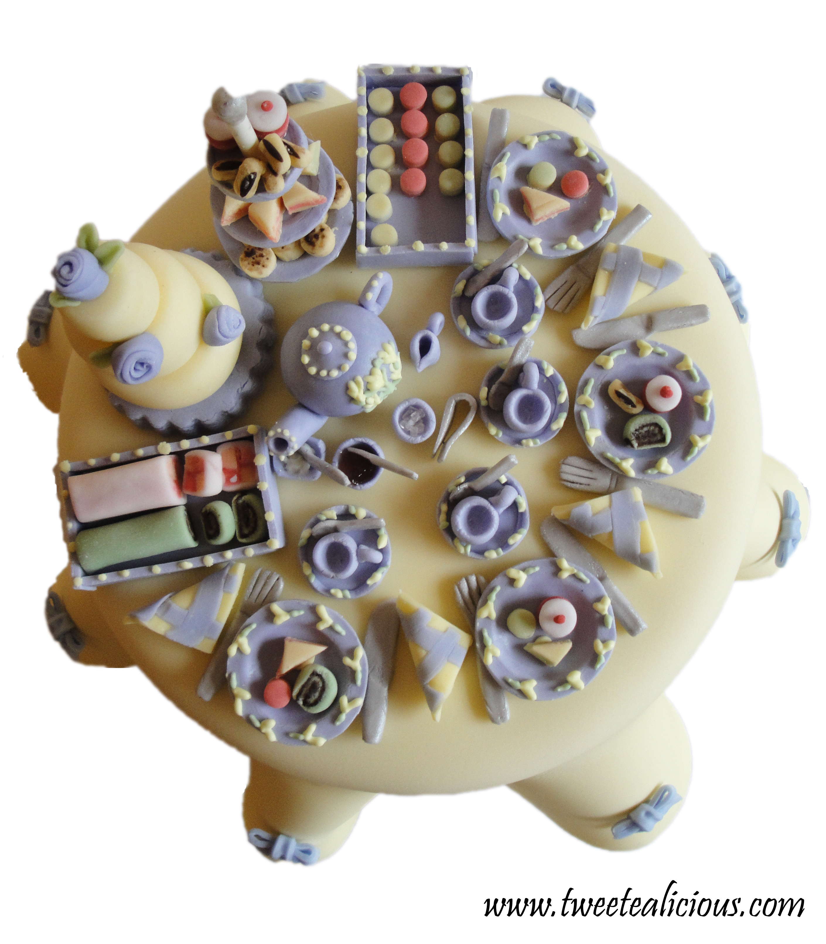 The cake is only 6″ in diameter. All the decorative pieces are hand made.